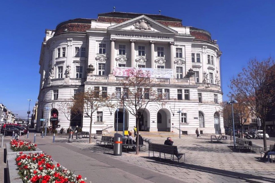 Banner am Amtshaus für das Kirschenahainfest 2022