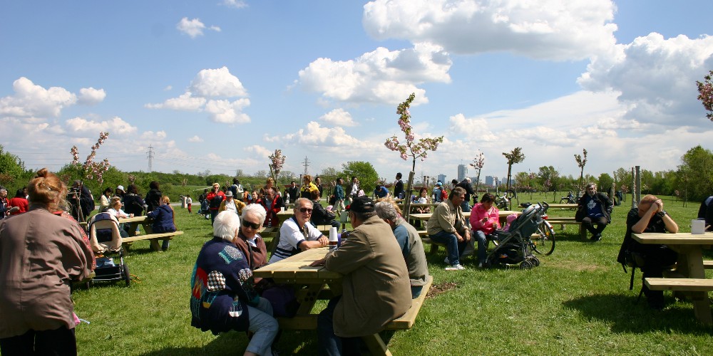 In Zukunft soll hier ein sich immer erweiternder Ort der Begegnung zwischen Menschen und der Natur unter den Kirschenbäumen entstehen. Wir wollen dieses Projekt mit vielen weiteren Aktionen fortführen.