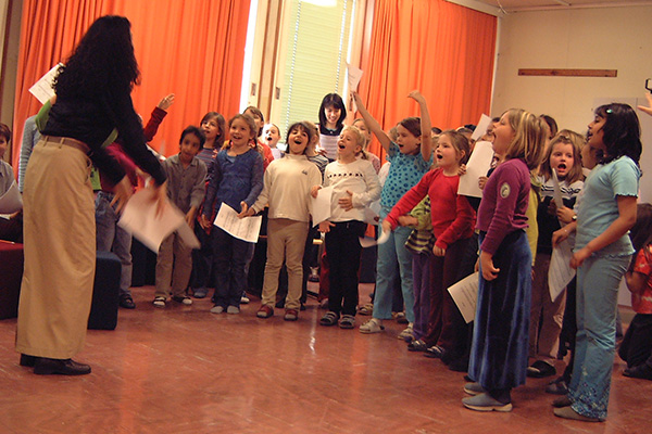 24.04.2002 Übung für Präsentation Workshop in einer Wiener Schule mit der angehenden Opernsängerin Nahoko Nishimura